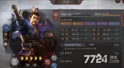 从面板属性上可以看到操作综合效果是比较不错的,特别统率初始达到99,而且成长属性达到2.70,而统率属性是影响到防御能力,因此曹操也是可以当做肉盾来使用,同时由于战法效果决定,曹操更适合当做辅助武将来使用,然后搭配强力输出武将来使用。而目前比较主流的是曹操夏侯惇程昱这套阵容,截图搭配可以参考如下: